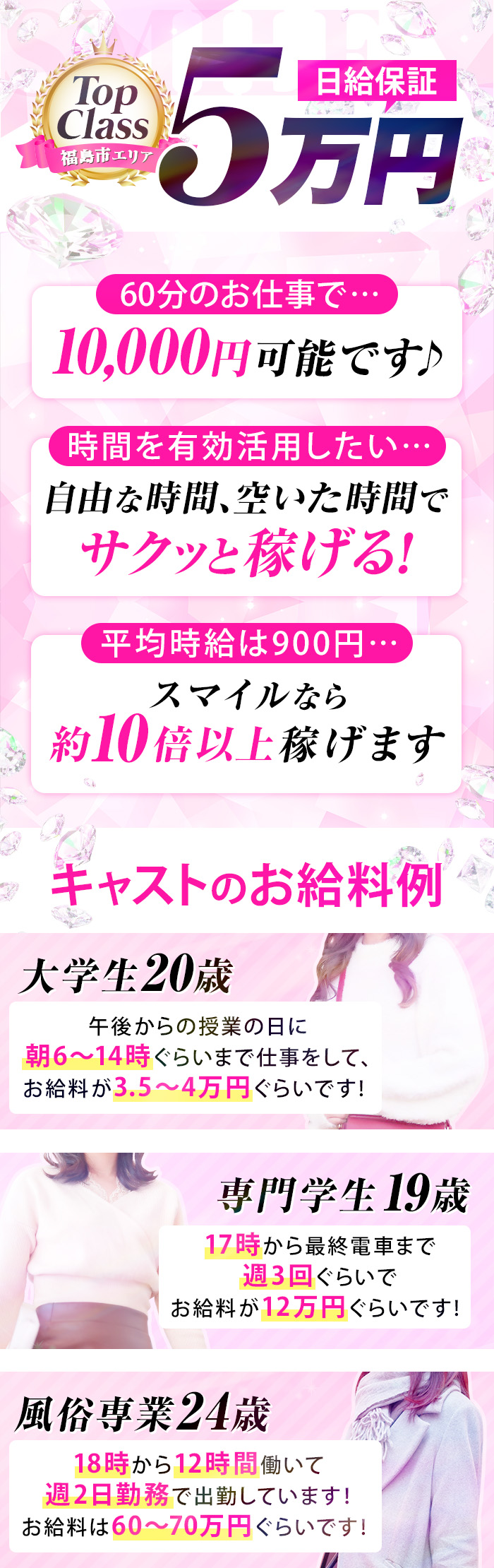 エリアトップクラスの日給保証50,000円!